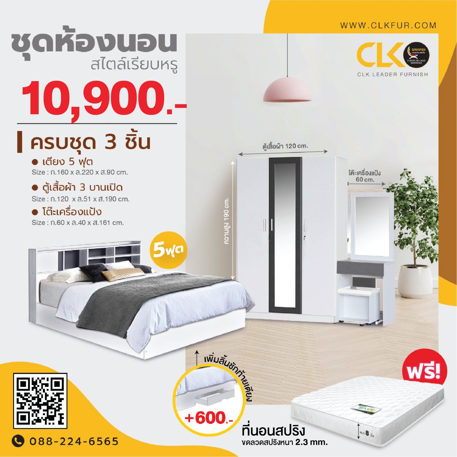 เพิ่มลิ้นชักท้ายเตียง +600 บาท