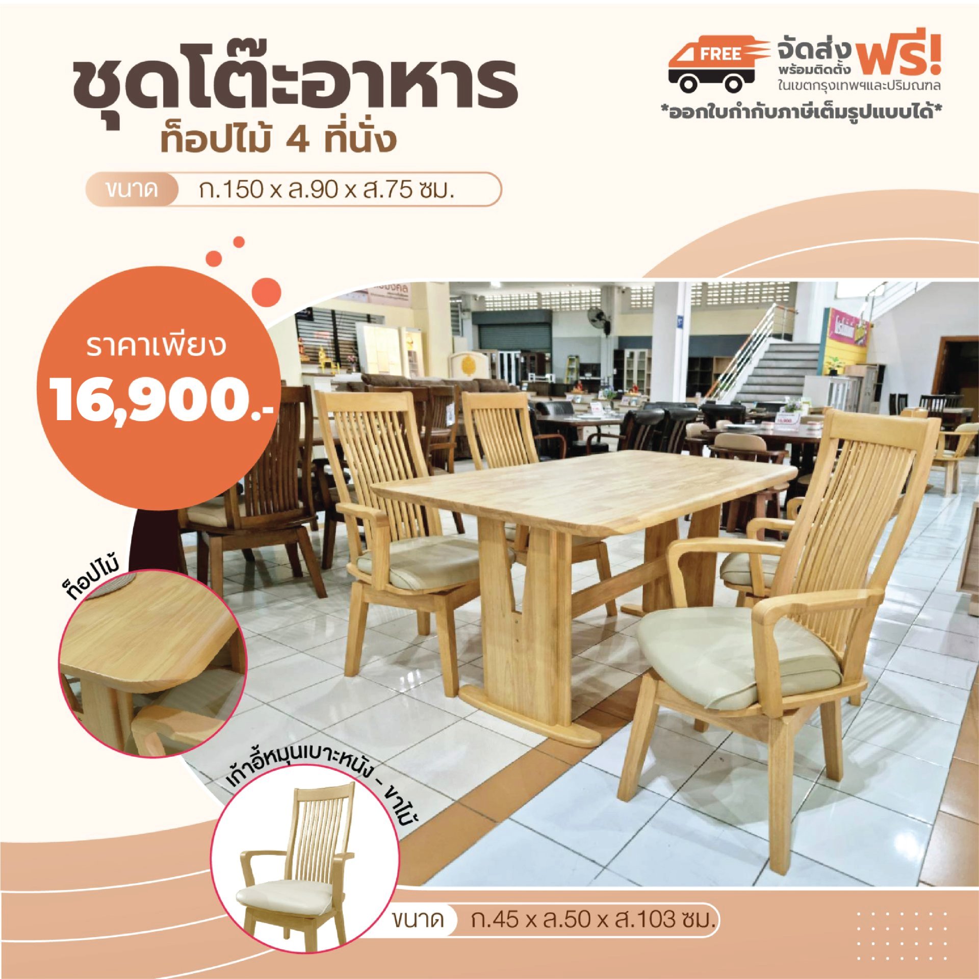 ชุดโต๊ะอาหารไม้ 4 ที่นั่ง