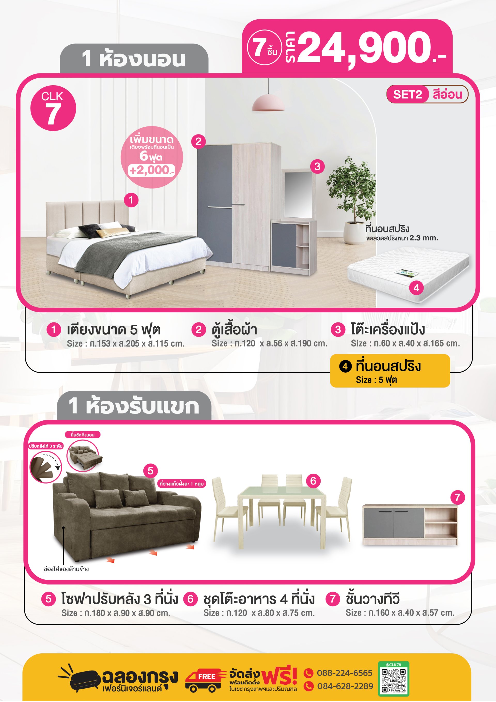 ชุดห้องนอน 6 ฟุต โทนสีขาว