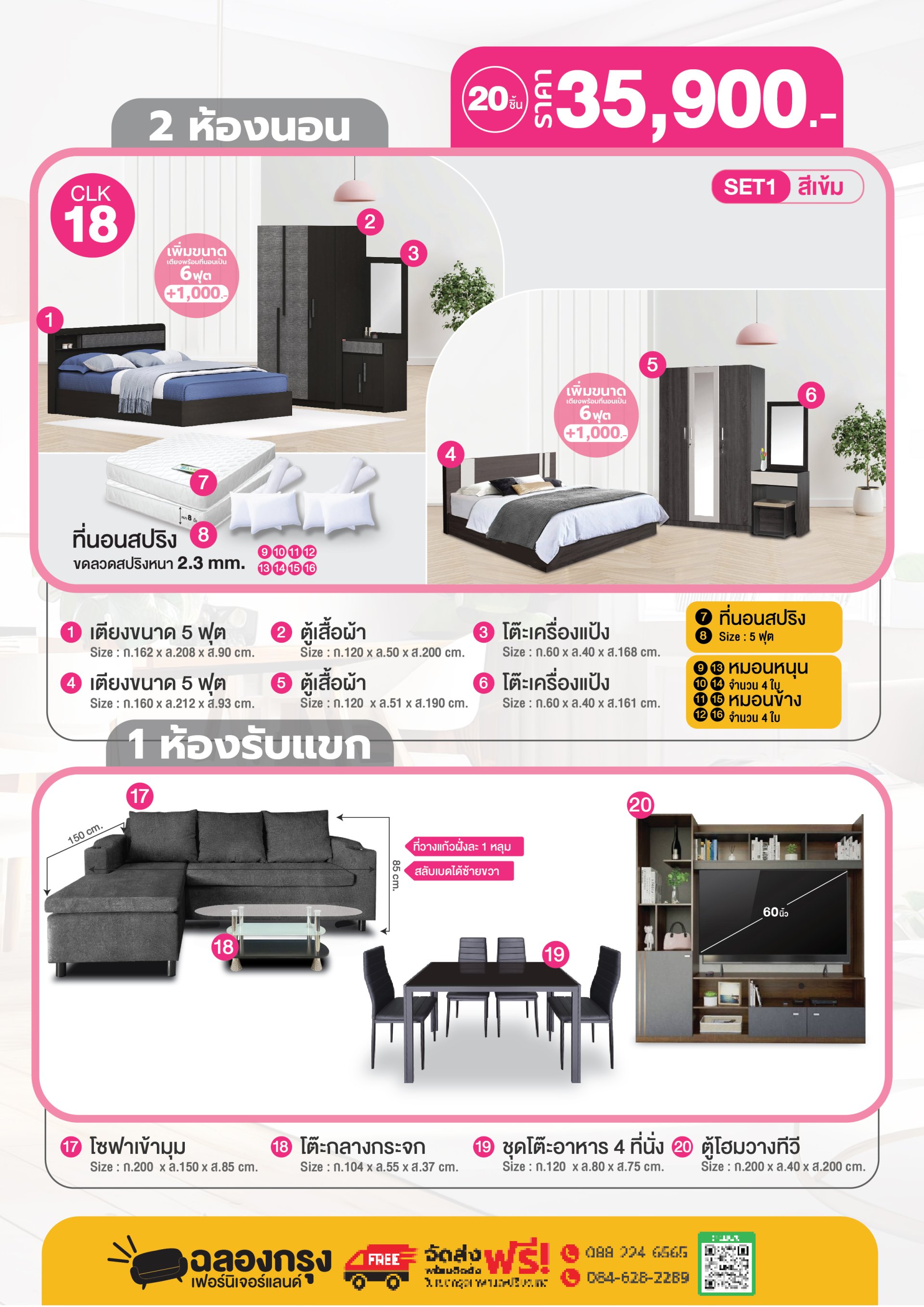 ชุดห้องนอน 6 ฟุต โทนสีขาว