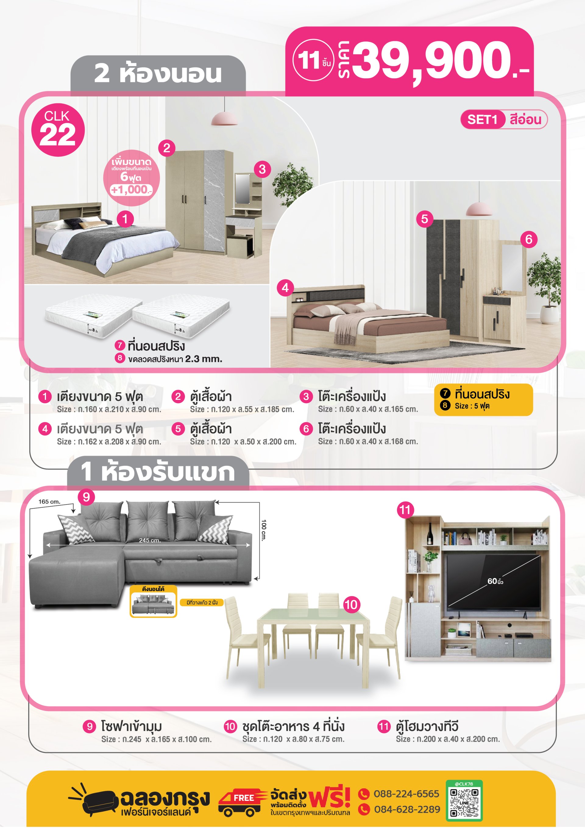ชุดห้องนอน 6 ฟุต โทนสีขาว