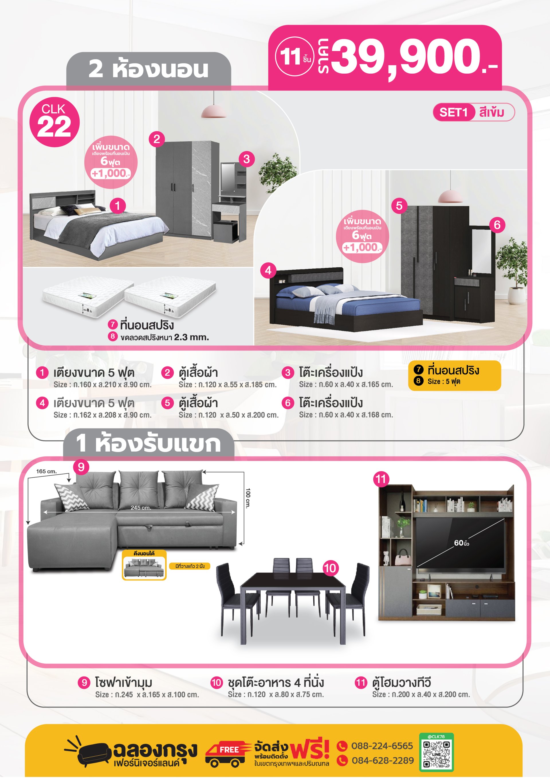 ชุดห้องนอน 5 ฟุต โทนสีขาว