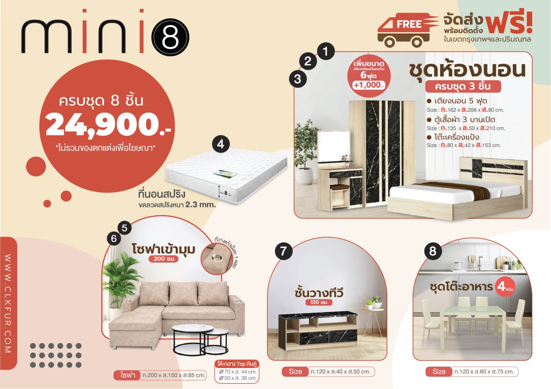 ชุดห้องนอน 6 ฟุต โทนสีขาว