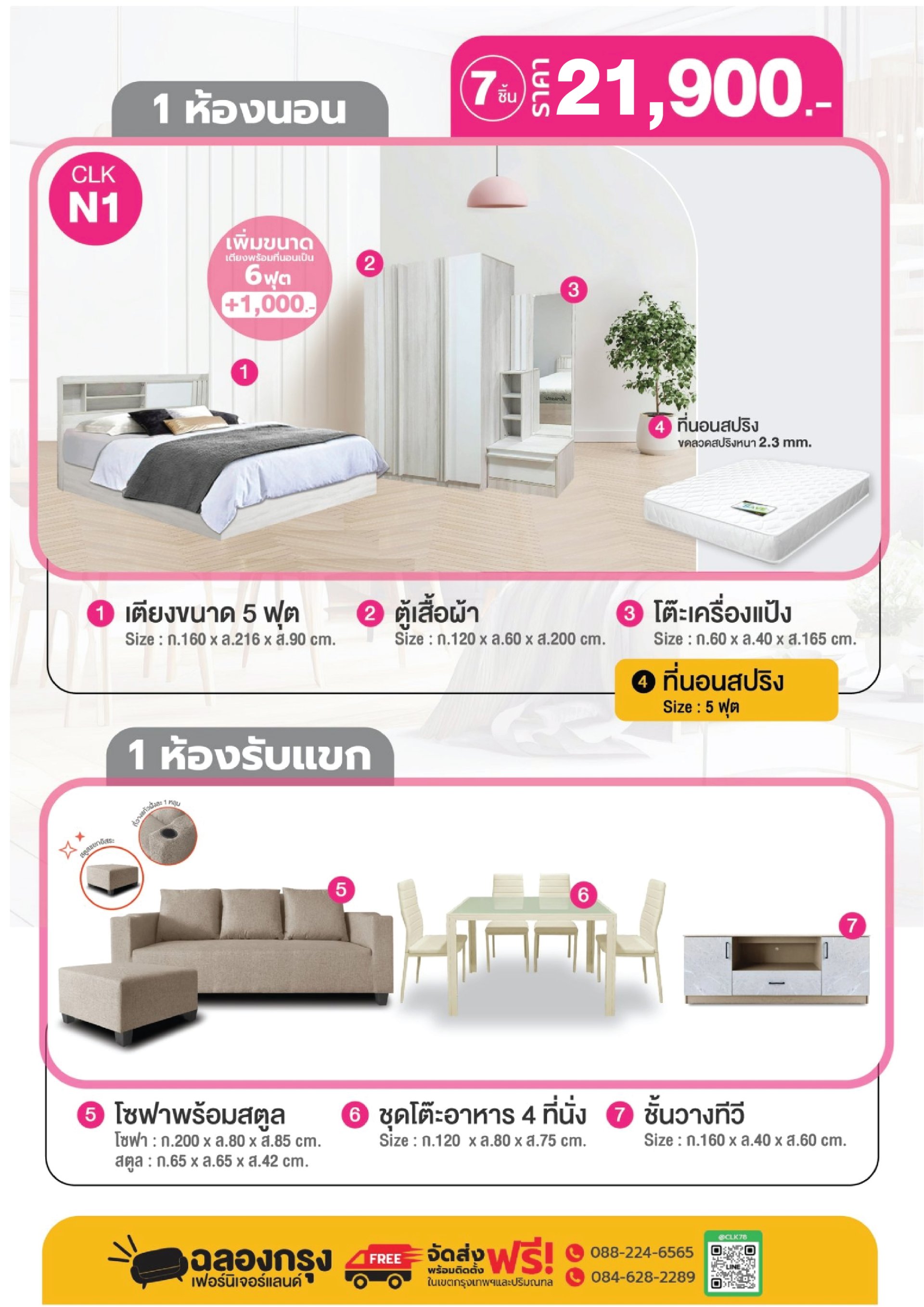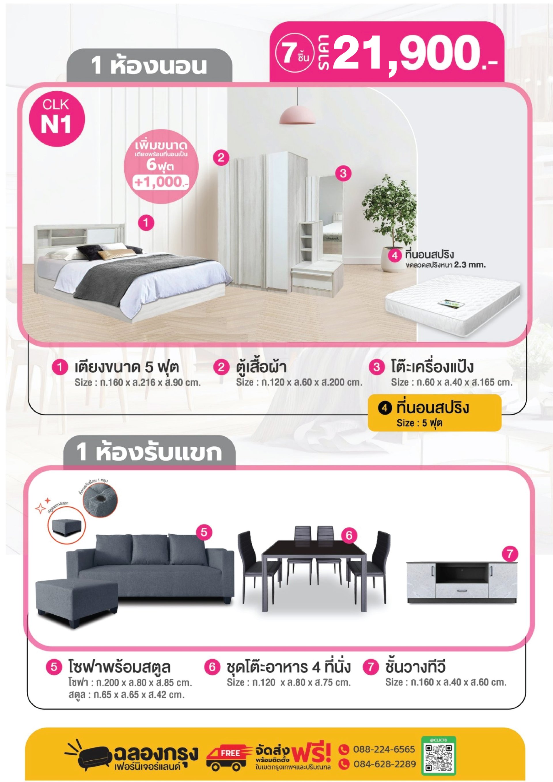 ชุดห้องนอน 6 ฟุต โทนสีขาว