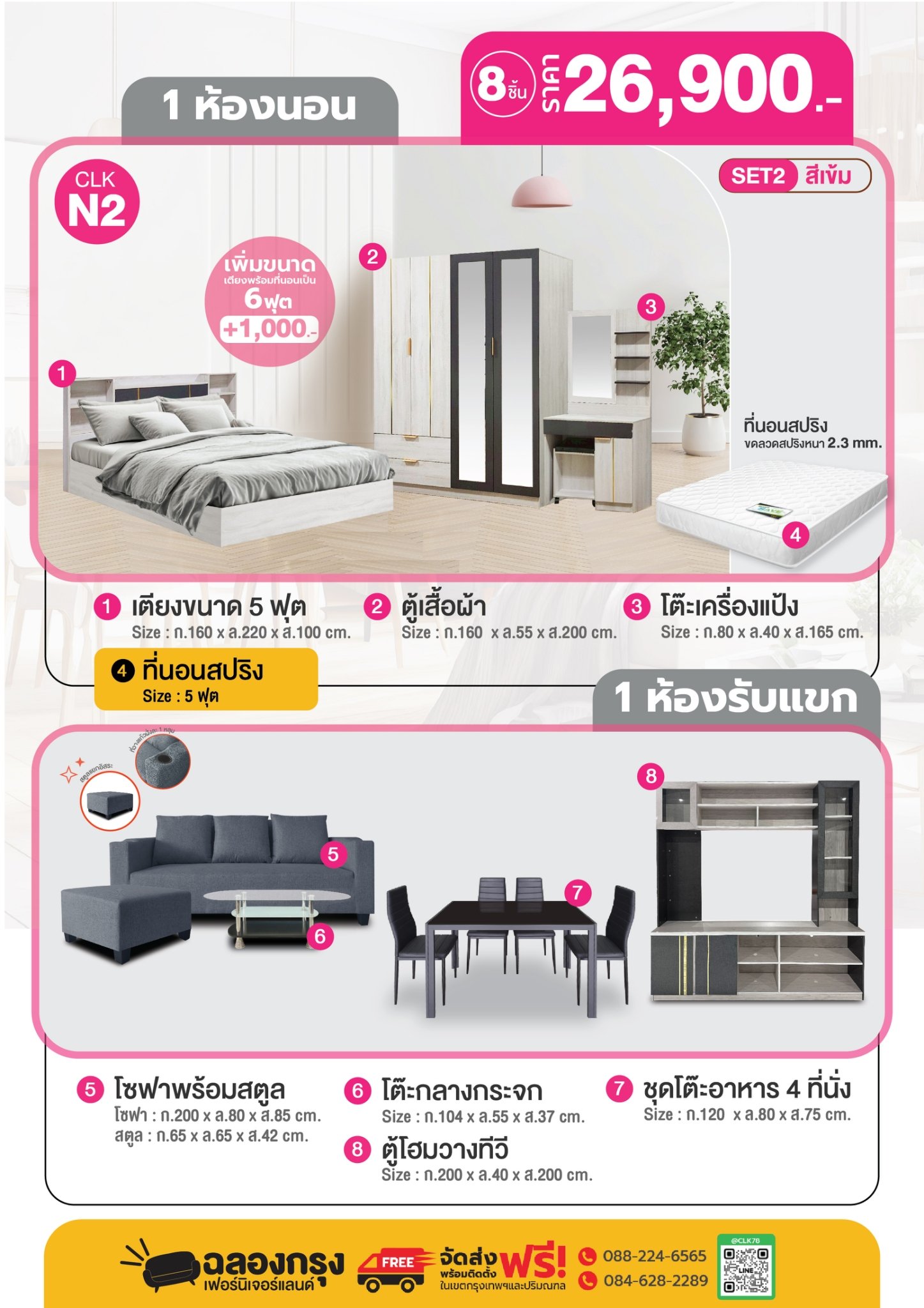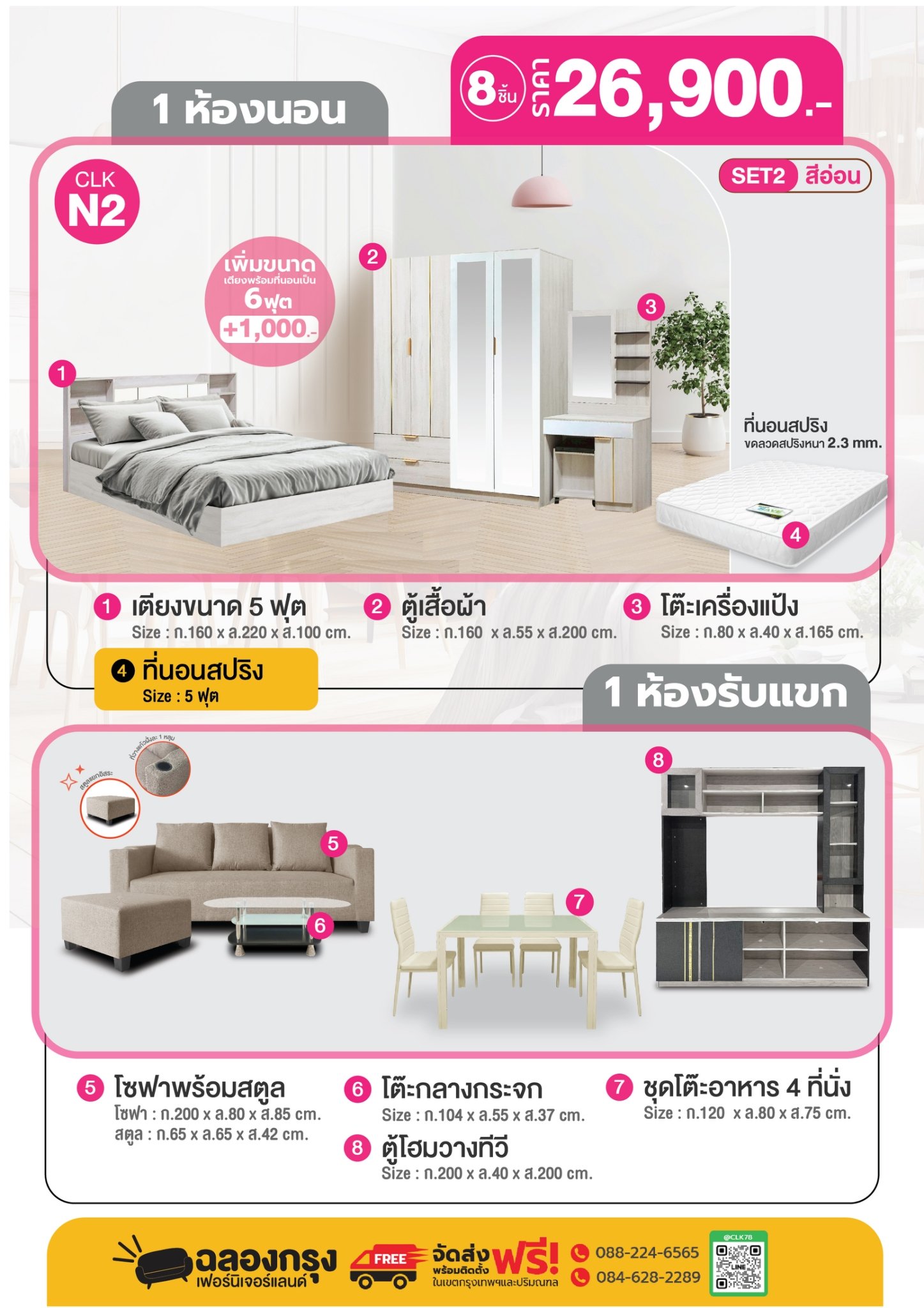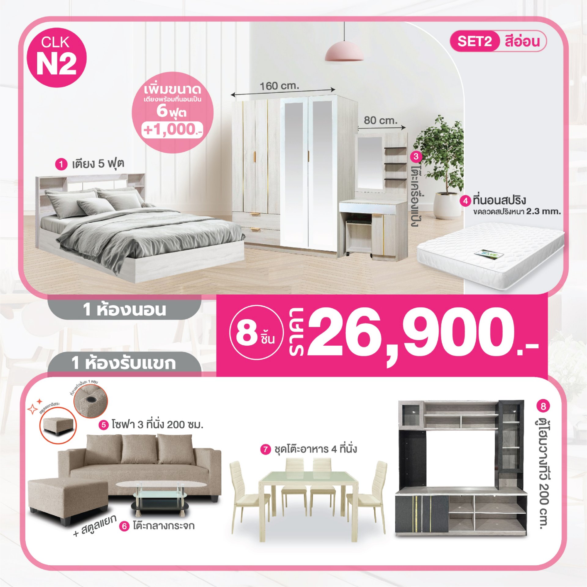 ชุดห้องนอน 6 ฟุต โทนสีขาว