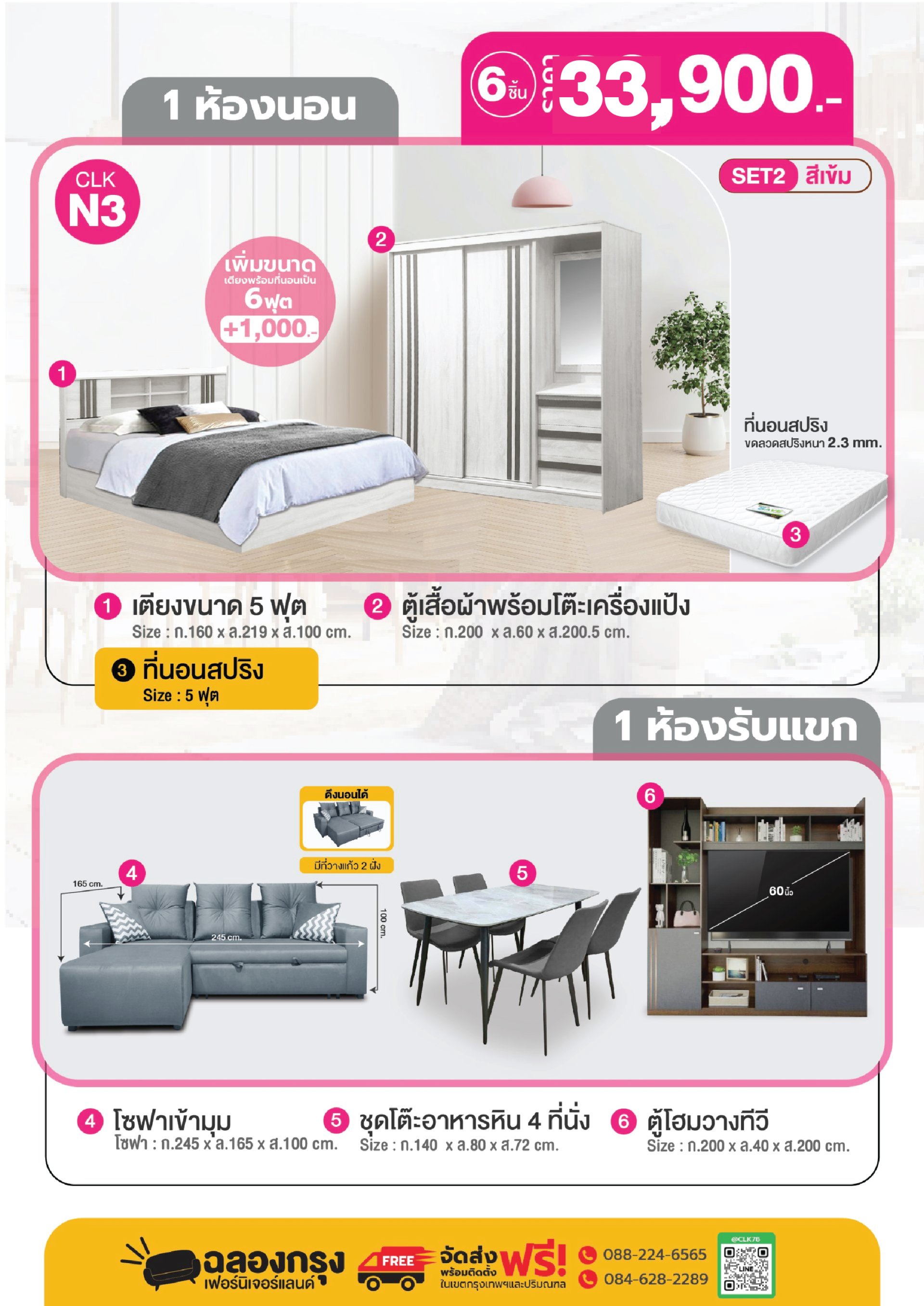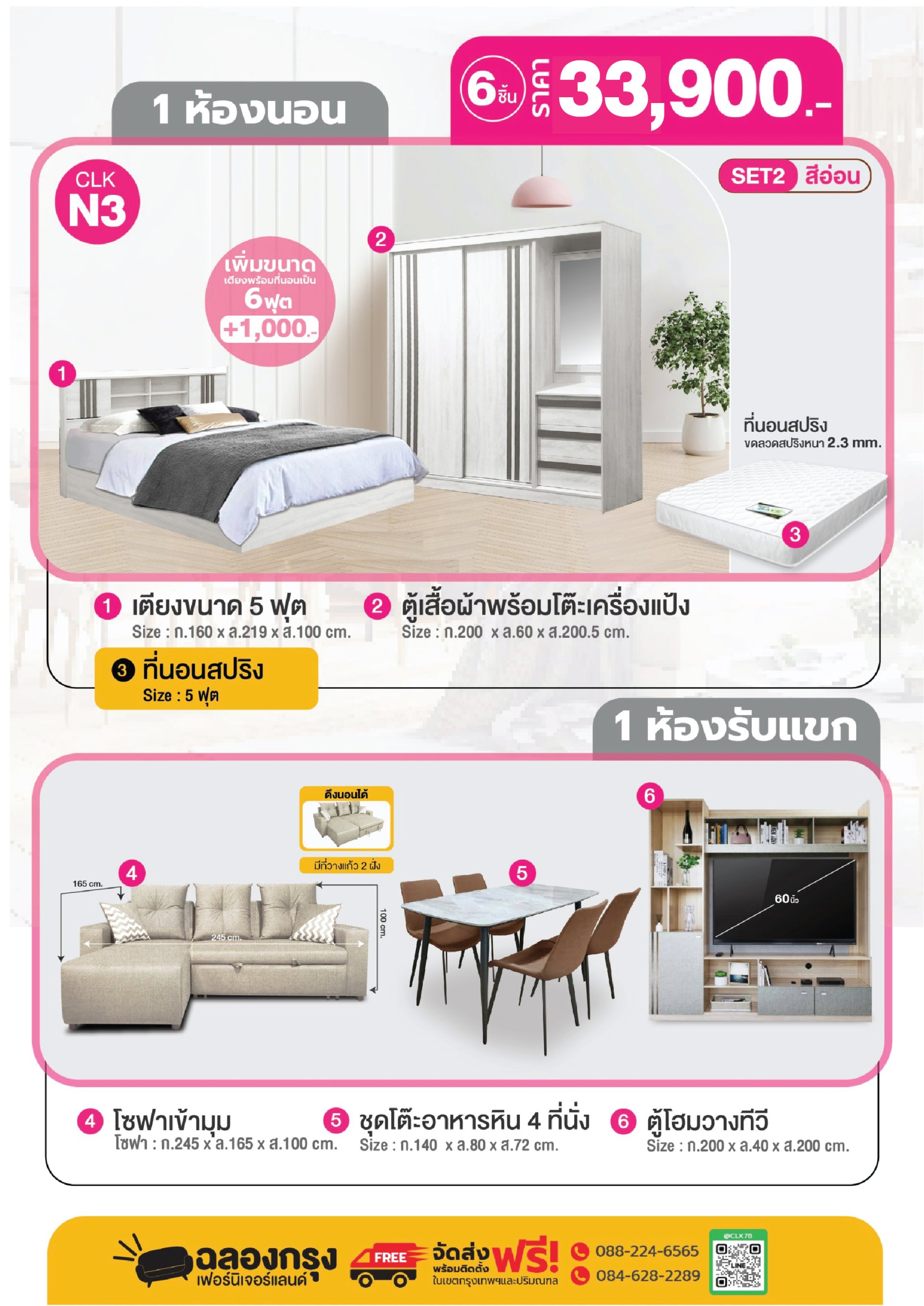 ชุดห้องนอน 6 ฟุต โทนสีขาว
