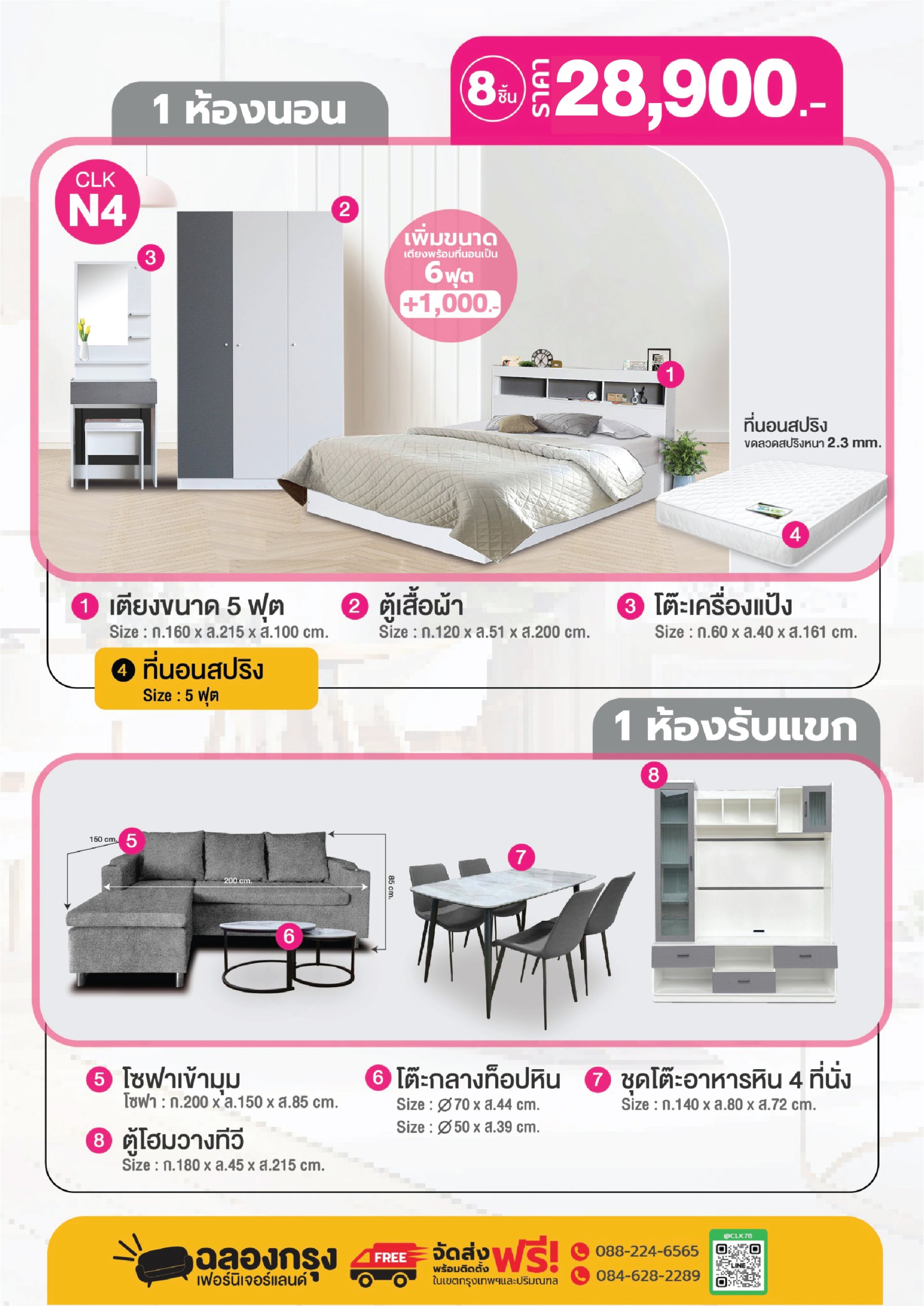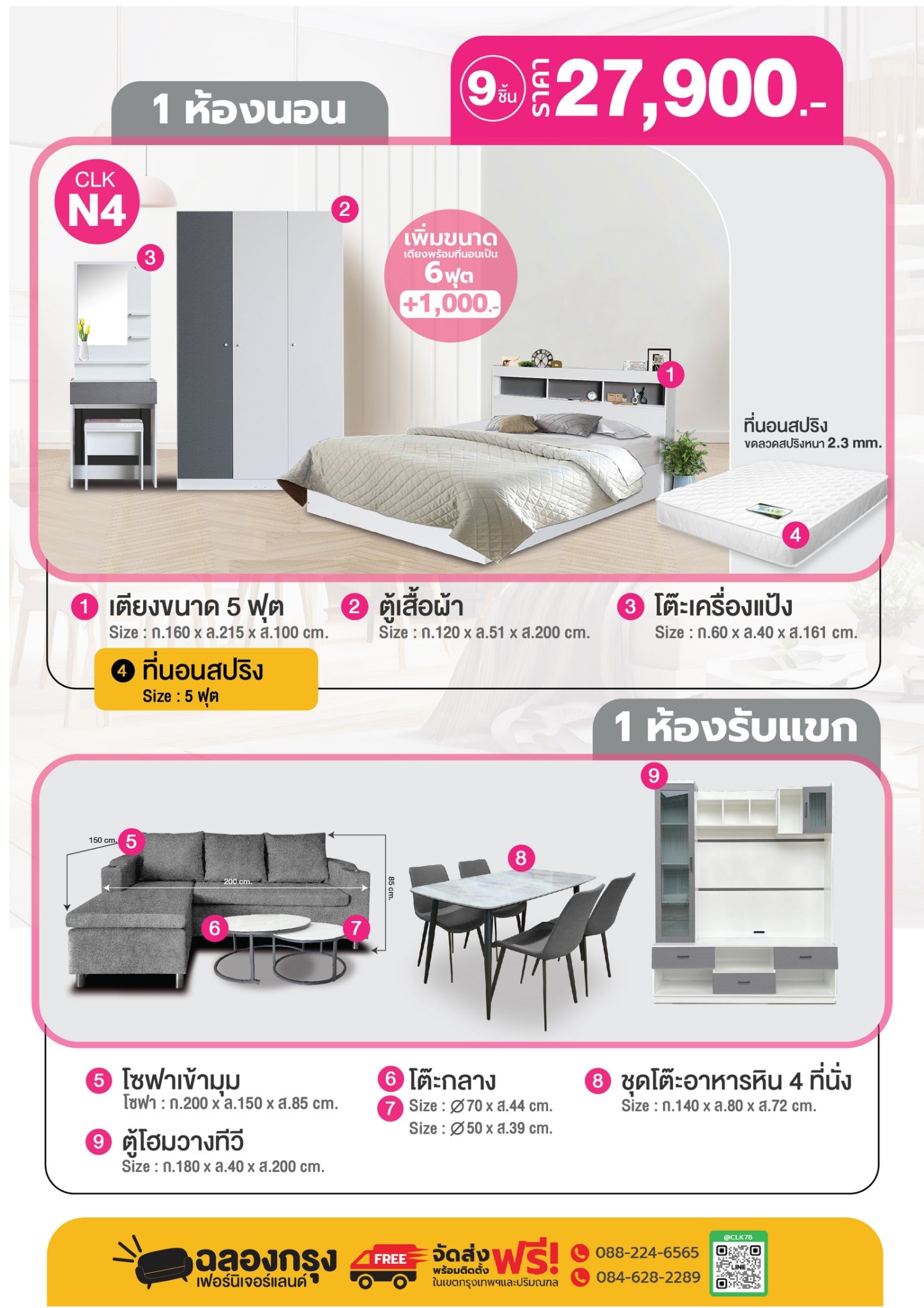 ชุดห้องนอน 6 ฟุต โทนสีขาว