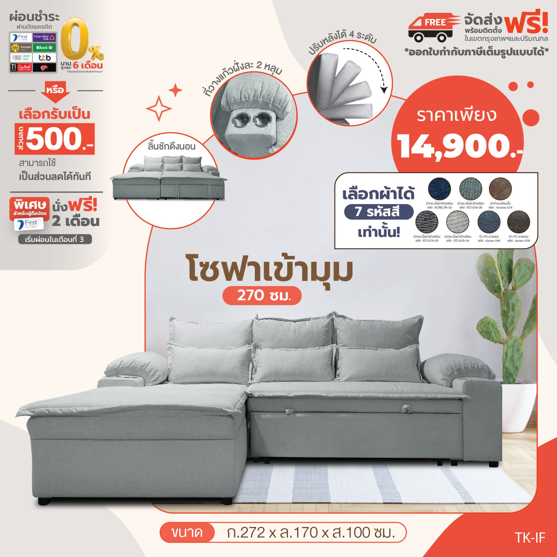 โซฟา พนักพิงปรับหลัง+ลิ้นชักดึงนอน