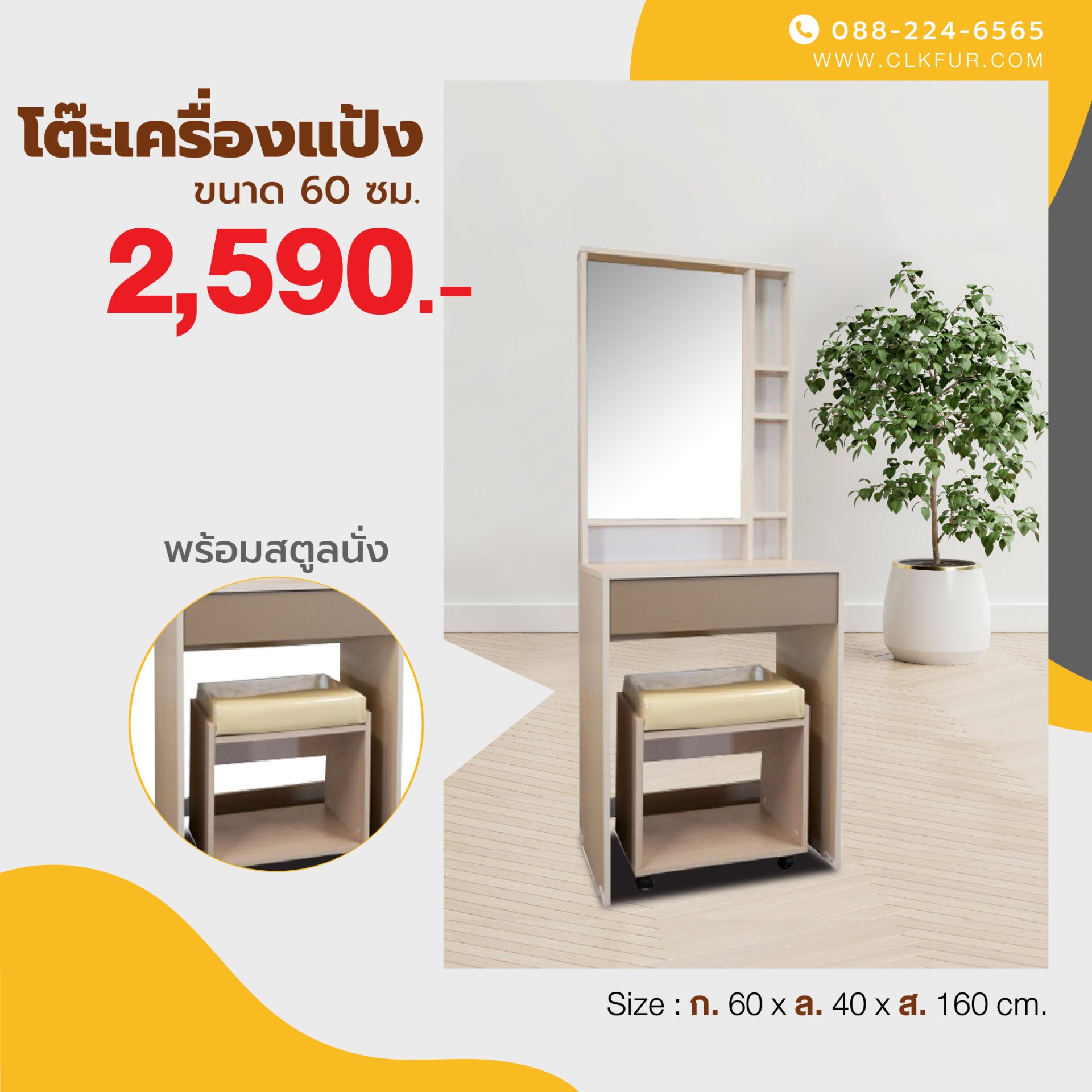 โต๊ะเครื่องแป้งยืน 60 ซม.