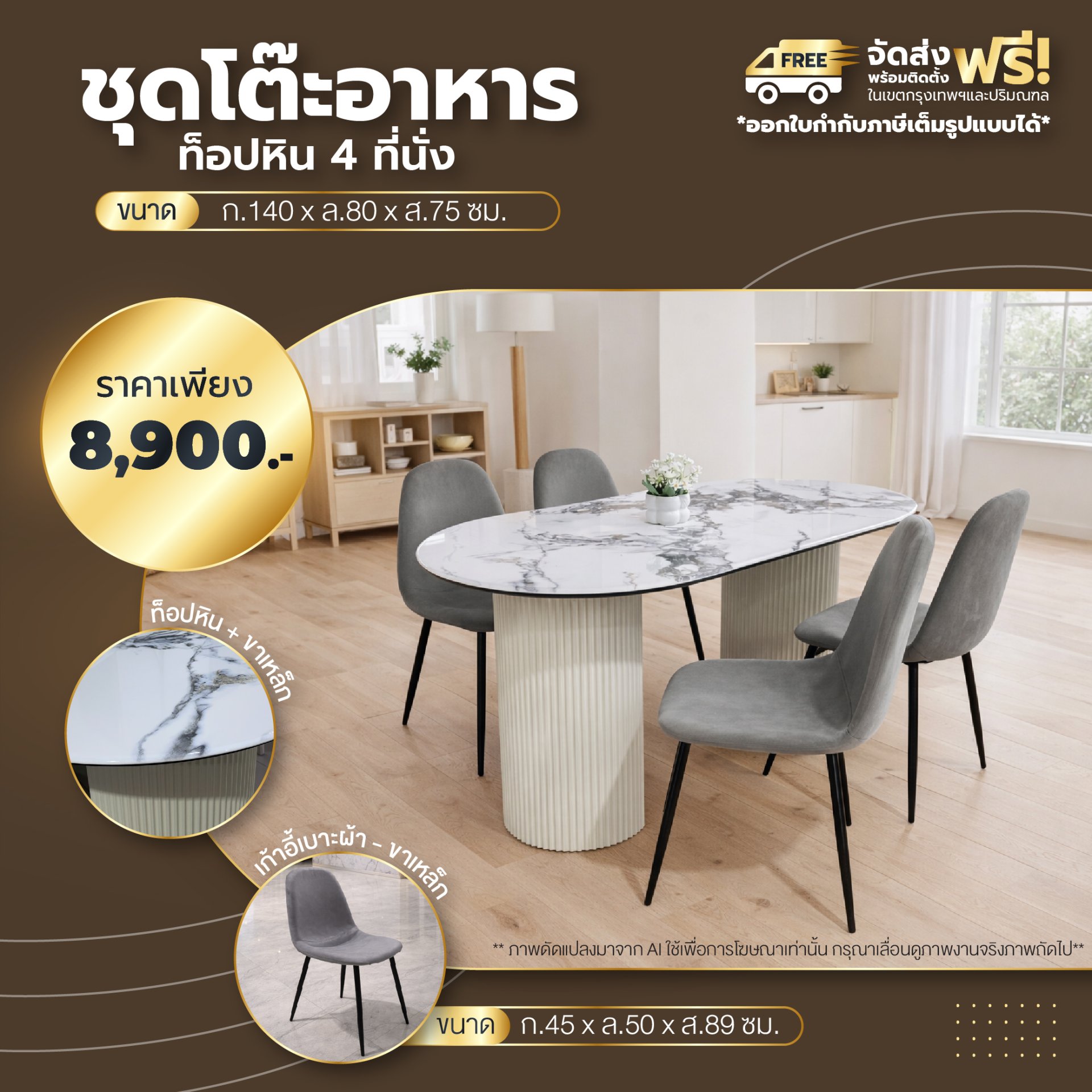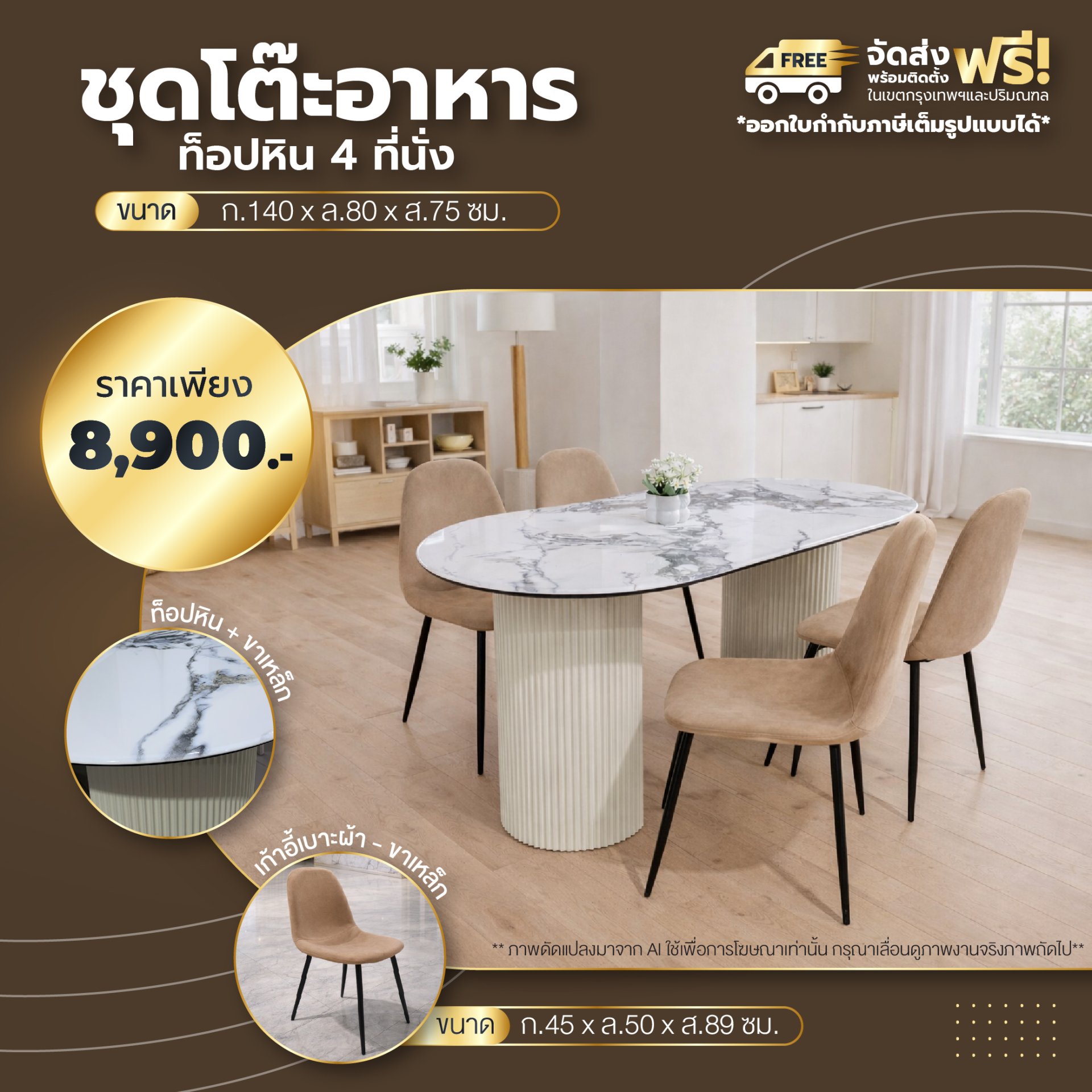 ชุดโต๊ะอาหารหิน 4 ที่นั่ง
