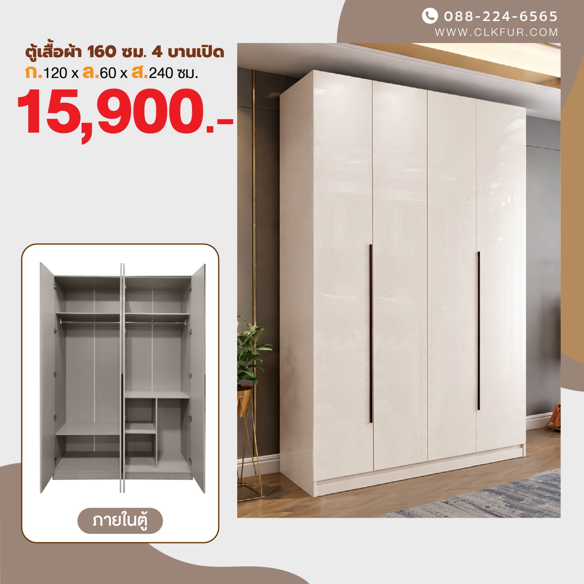 ขนาด 5 ฟุต (ตู้เสื้อผ้าบานเปิด)