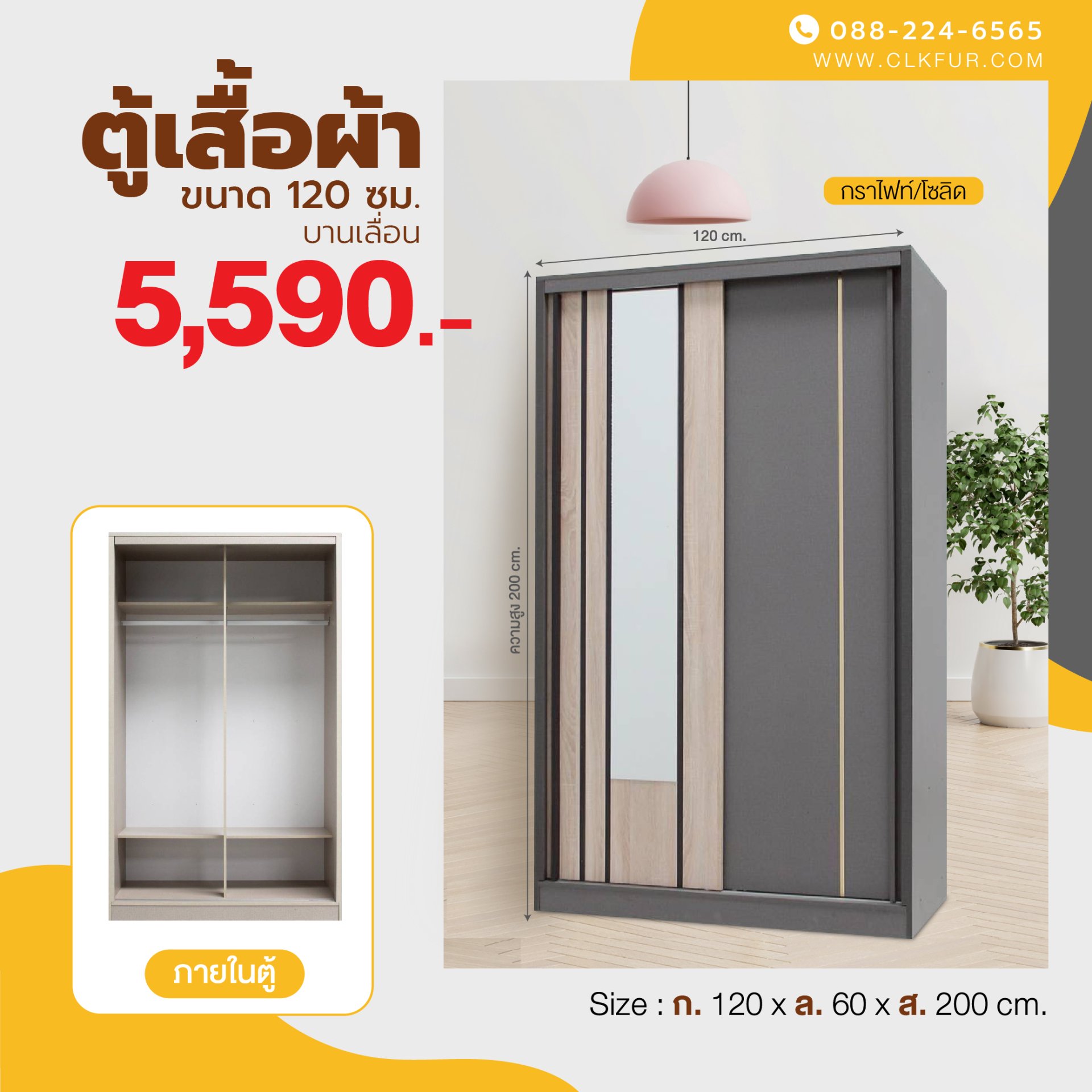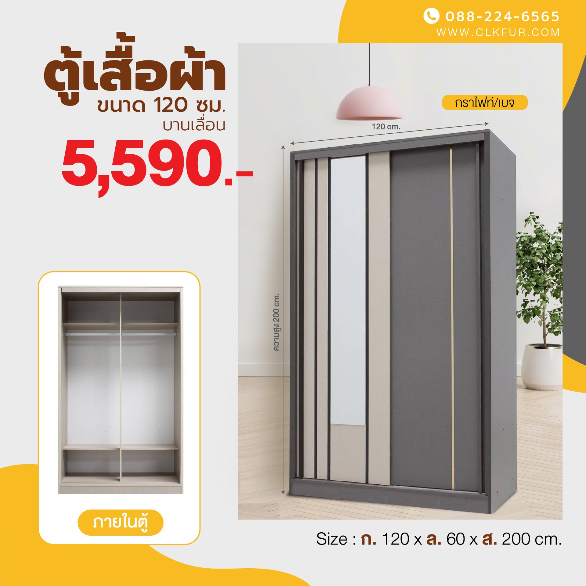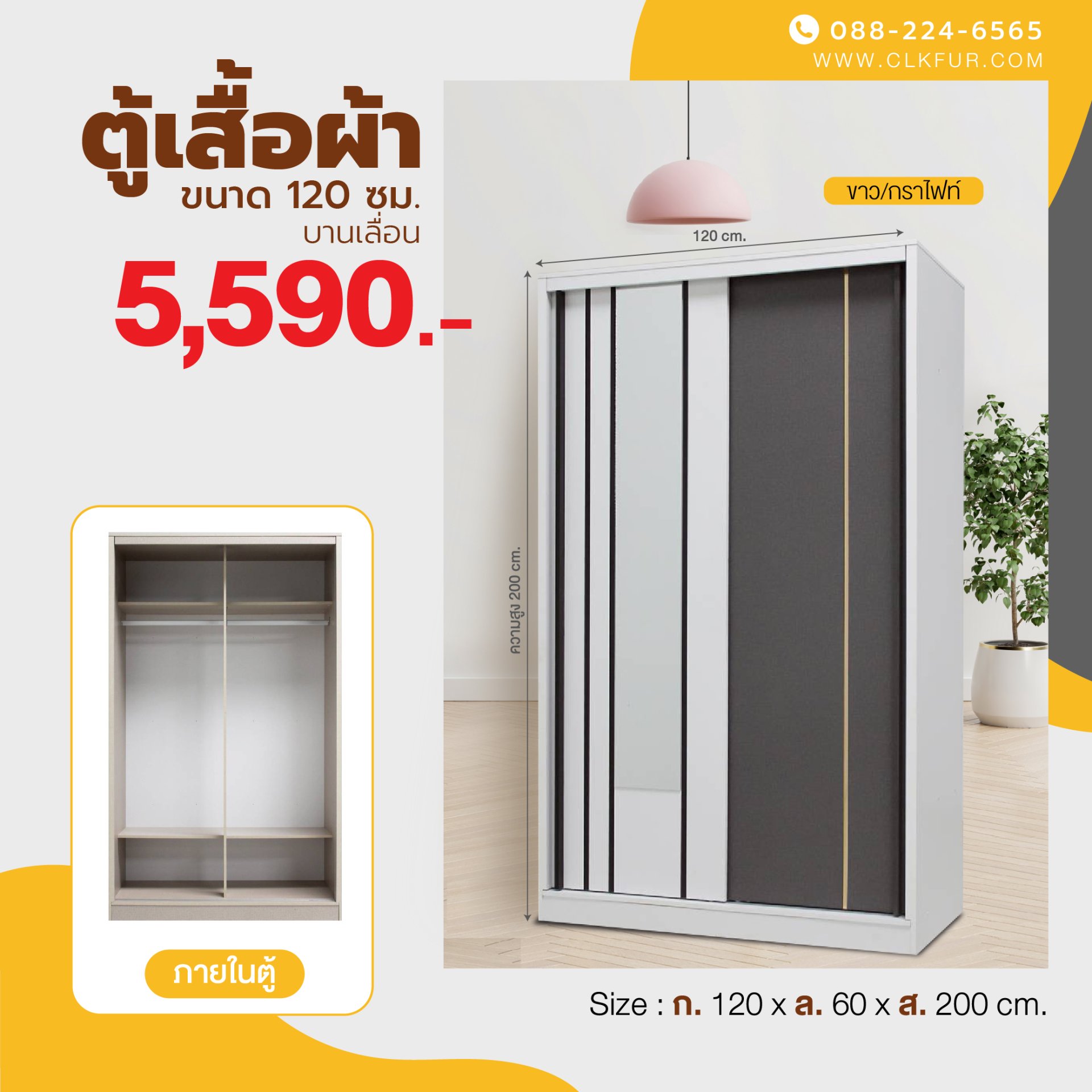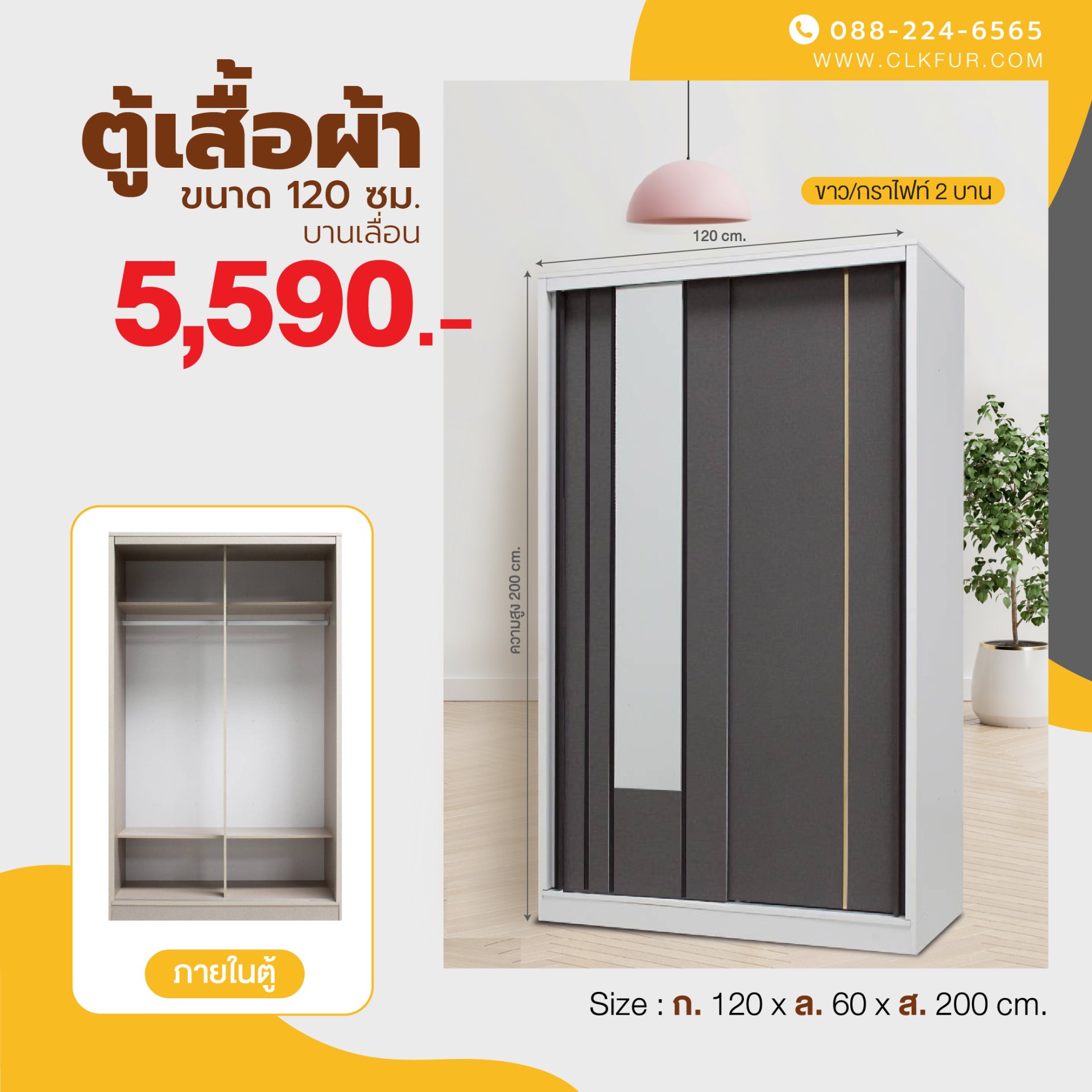 ขนาด 5 ฟุต (ตู้เสื้อผ้าบานเลื่อน)