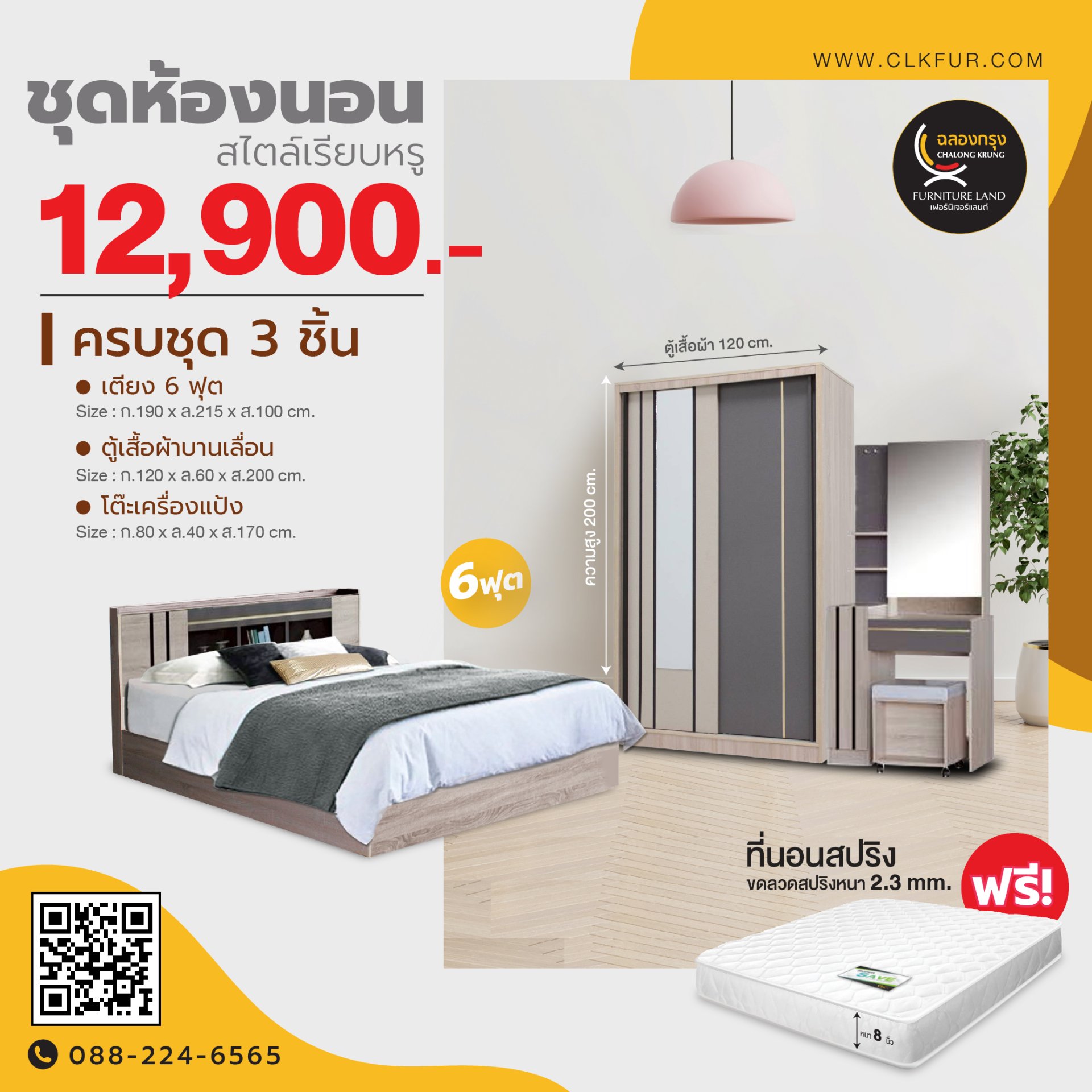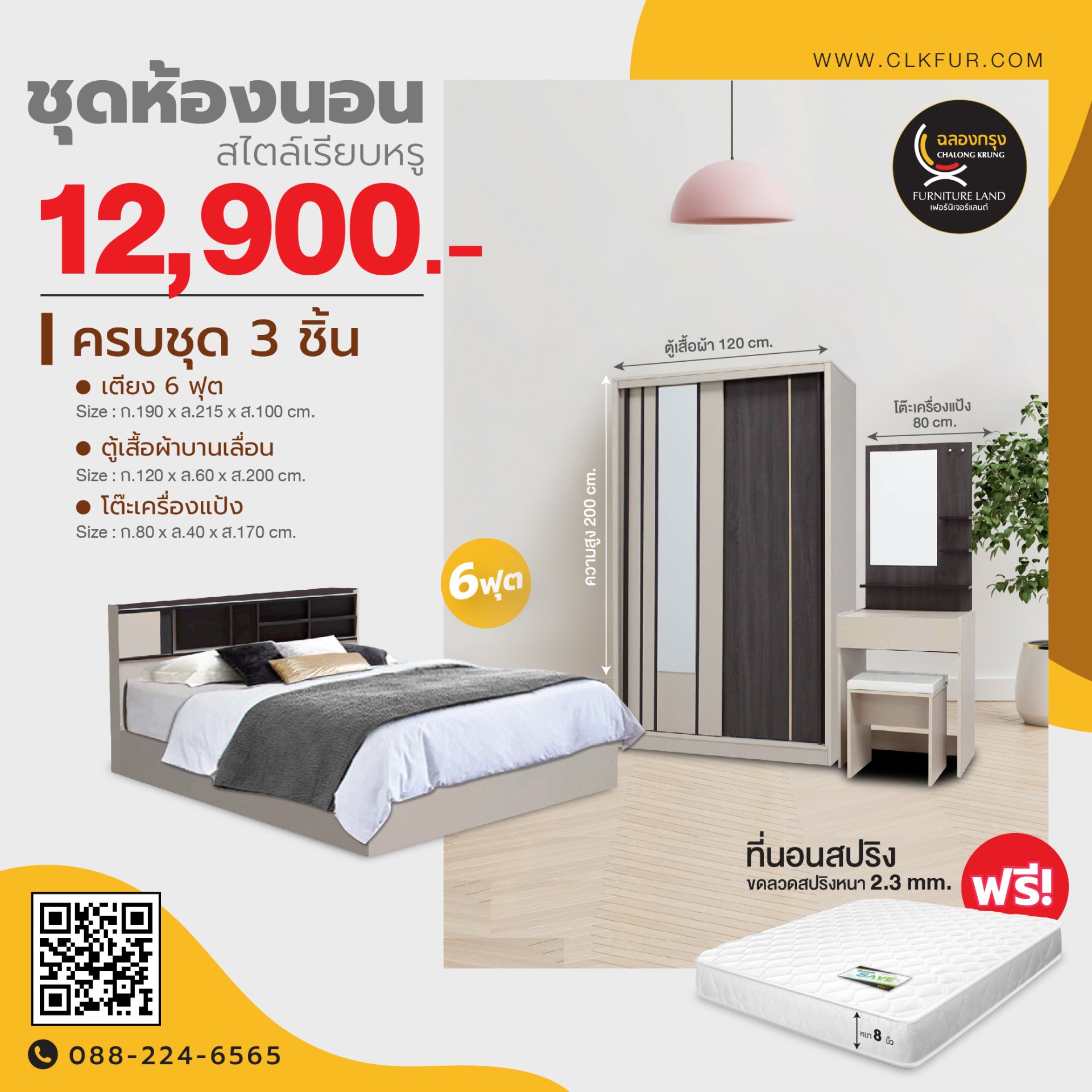 ชุดห้องนอน 6 ฟุต โทนสีขาว