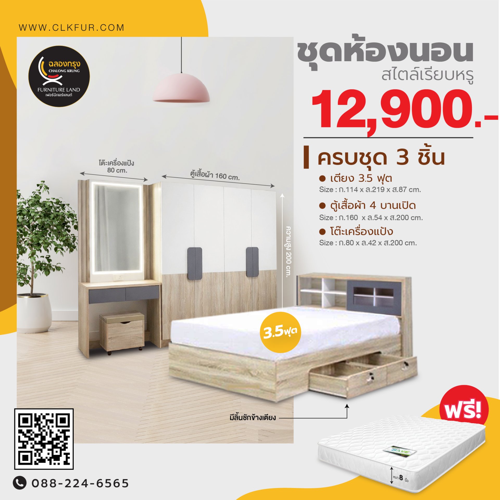 ชุดห้องนอน 3.5 ฟุต โทนสีขาว